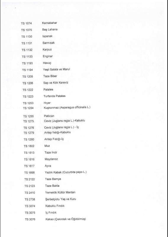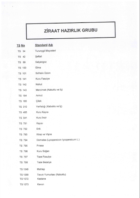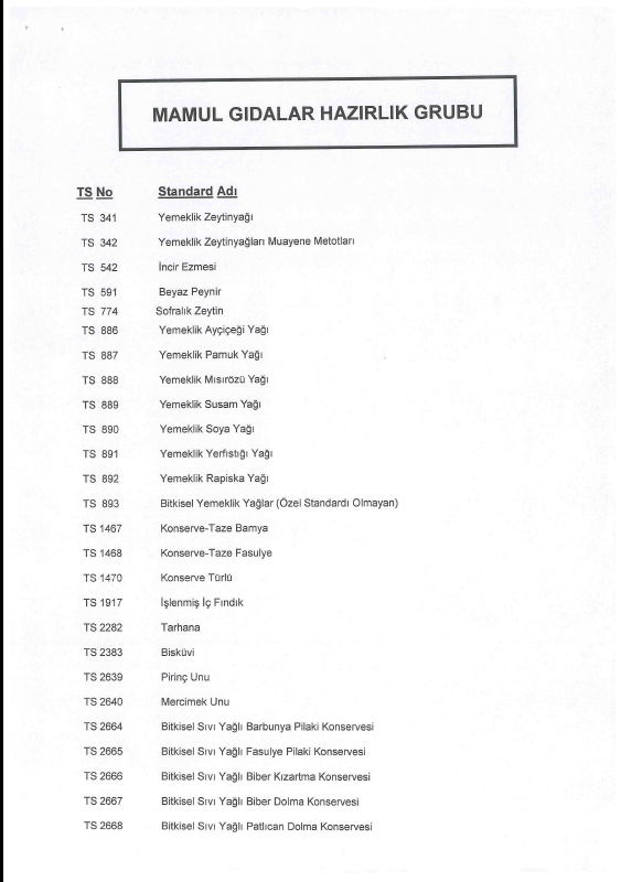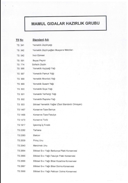 TSE ile yaptığımız yazışma sonucunda, gıda kontrol hizmetlerinde uygulanan zorunlu standartların listesi aşağıdaki şekilde bildirilmiştir.