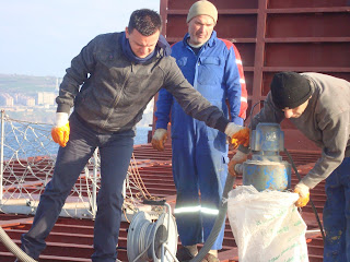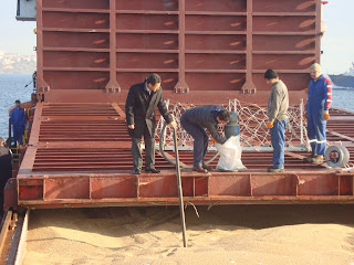 Gıda kontrol görevlisi Cevdet SOYAK ve Taylan ÇELİK tarafından, bir Rus Gemisinde ithalat denetimi yapıldı. Gemi ambarlarında bulunan ekmeklik buğdaylar Türk Gıda Mevzuatına göre değerlendirildi. Fiziksel özellikleri uygun bulunan buğdaylardan pneomatik sonda marifetiyle paçal numune alındı. Numuneler; buğday spekti, okratoksin ve pestisit kalıntıları yönününden ayrıntılı bir risk değerlendirmesi yapılmak üzere Tekirdağ İl Kontrol Laboratuvarına teslim edildi. Laboratuvar analiz sonuçları da dikkate alınarak ürün hakkında ithalat mevzuatı gereği gümrük müdürlüğüne uygunluk yada uygunsuzluk yazısı gönderilecektir....