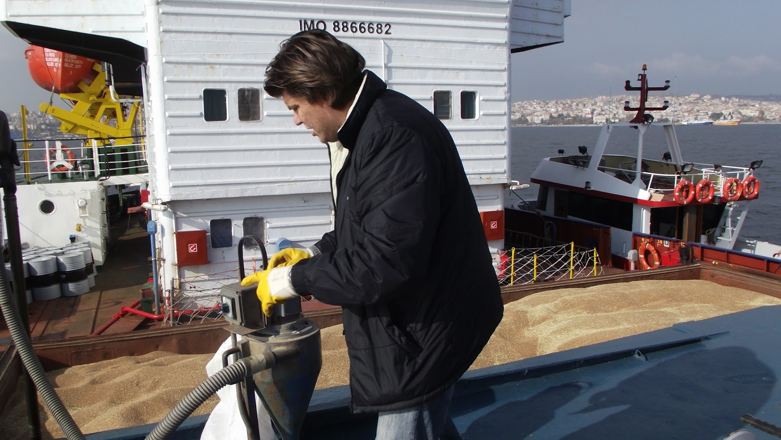 tekneye indirip bez torbalara doldurduk ve etiketleme-mühürleme